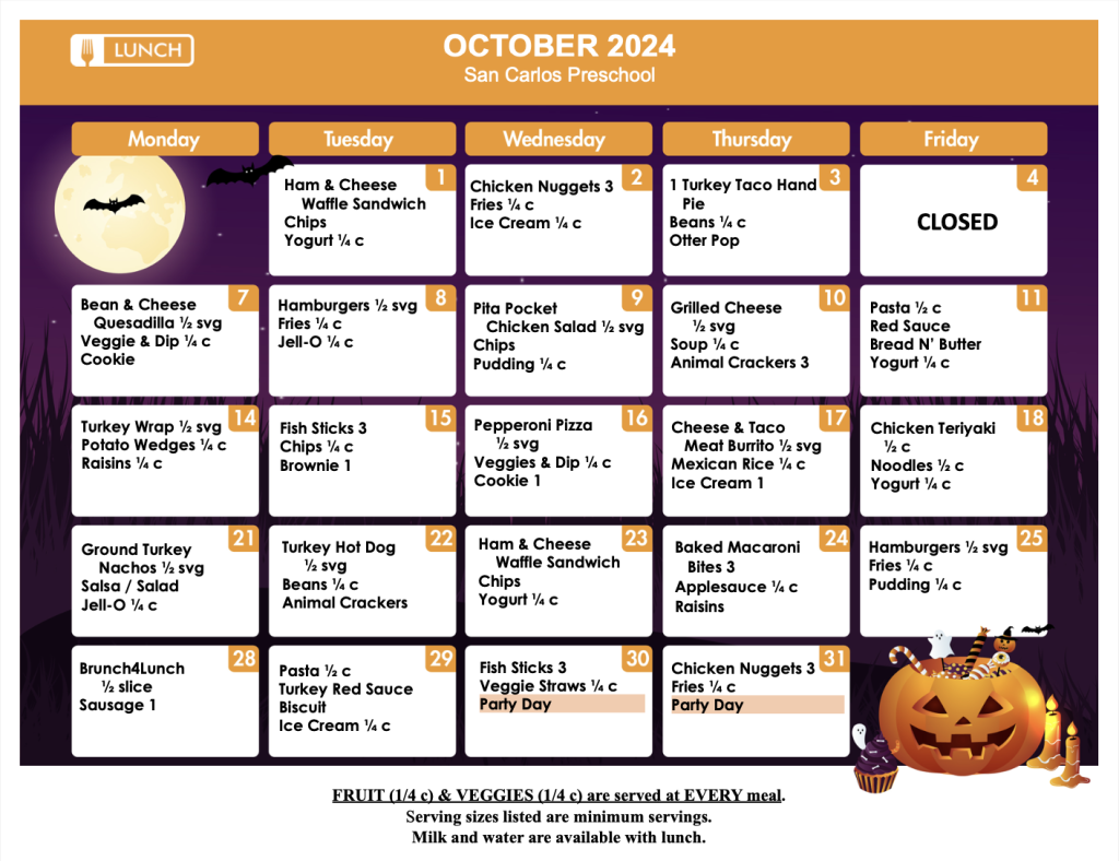 Fruit includes but is not limited to apple slices, applesauce, raisins, orange slices, banana, melon, etc.